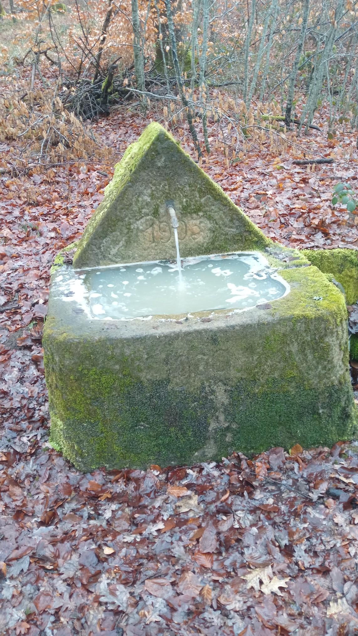 Unterwegs entdeckten wir mehrere Brunnen und kleine Wasserstellen, die durch den Regen noch lebendiger wirkten. Das plätschernde Wasser fügte sich harmonisch in die Geräuschkulisse des Waldes ein. Immer wieder legten wir kurze Stopps ein, um besondere Stellen zu betrachten und die Eindrücke gemeinsam zu genießen.
