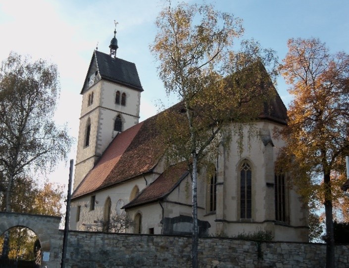 Start der Wanderung ist der Parkplatz an der Petruskirche. Die Kirche wurde bereits im 9. Jahrhundert erwähnt. Das heutige Gebäude ist in den Jahren 1501 bis 1508 in spätgotischem Stil erbaut worden.