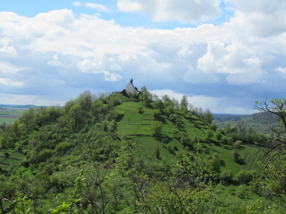 Am Sonntag den 28. April war man unterwegs Rund um das Naturschutzgebiet “Hirschauer Berg“. Beim Start in Schlaitdorf regnete es, und über die Mittagszeit ging ein Graupelschauer nieder. So waren wir nur fünf Wanderfreunde. Ab Gniebel war die Straße trocken, und so sollte es auch bleiben. Nach dem Beginn der Wanderung beim Friedhof in Hirschau boten sich viele beeindrucke Aussichten ins Neckartal, Richtung Albtrauf, sowie zur Burg Hohenzollern Der Premium-Spazierwanderweg „Hirschauer Spitzbergwegle“ zeichnet sich durch seine vielfältigen Naturschönheiten und atemberaubenden Panoramablicke aus. Der Weg führte vom Hirschauer Friedhof auf den Spitzberg, ein langgezogener, bewaldeter und bis zu 470 m hoher Bergrücken zwischen Tübingen und Wurmlingen. Entlang des Waldrands eröffnet sich der Blick über das weite Neckartal bis hin zur Burg Hohenzollern und den Erhebungen des Albtraufs. Vor einem zeigt sich immer wieder der freistehende Kegel des Kapellenbergs mit der Wurmlinger Kapelle. Der Rückweg führte durch die Hirschauer Streuobstwiesen und Weinberge vorbei an steilen, terrassierten Trockenmauern. Es war ein schöner gemütlicher Wandernachmittag, der im Fleckenstüble in Schlaitdorf seinen harmonischen Abschluss gefunden hat