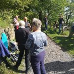 Auf größtenteils naturbelassenen Wegen und Pfaden ging es hinauf in die Breitenholzer Weinberge. Die Hänge sind durch Trockenmauern gegliedert, die Parzellen klein und steil – viel Handarbeit steckt daher in jeder Flasche Wein. Der Trauf ist schon sehr interessant, wenn man sich vorstellt, dass hier mal das Meer bis an die Felsen reichte. Immer wieder gingen wir durch die Laubwälder des Schönbuchs. Das Schöne an der Wanderung war, dass man immer wieder an einem sonnigen Plätzchen hinaus ins Heckengäu, nach Herrenberg rüber und auch zur Wurmlinger Kapelle sowie zum Hohenzollern bei den 10 Tausendern im Süden, einen Ausblick bei schönstem Wetter hatte. An einem kleinen Anstieg legten wir eine kurze Rast ein. Hier konnten wir in der Ferne mit ein bisschen Weitblick den Thyssenturm bei Rottweil erahnen. Langsam ging es durch den Wald hinab Richtung Entringen, der Hauptgemeinde von Ammerbuch. Auf diesem Weg hatten wir auch einen Blick zum Schloss Hohenentringen. Über die Streuobstwiesen am unteren Hang entlang gingen wir wieder Richtung Breitenholz, ein Stück weit entfernt hatten wir einen Blick zum Nubenhäusle. Diese Schutzhütte aus der Anfangszeit des 19. Jahrhunderts diente als Pausenplatz an der „Weißen Steige“, einer von vielen wichtigen Wegeverbindungen vom Gäu über den Schönbuch in Richtung Stuttgart.