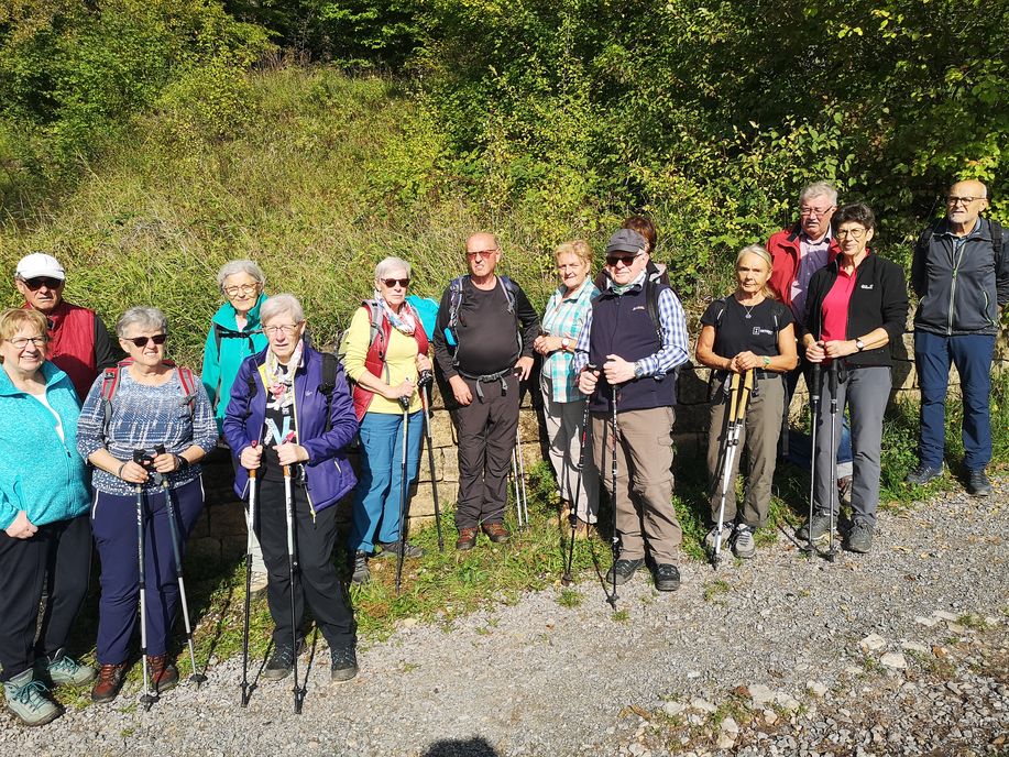 Auf größtenteils naturbelassenen Wegen und Pfaden ging es hinauf in die Breitenholzer Weinberge. Die Hänge sind durch Trockenmauern gegliedert, die Parzellen klein und steil – viel Handarbeit steckt daher in jeder Flasche Wein. Der Trauf ist schon sehr interessant, wenn man sich vorstellt, dass hier mal das Meer bis an die Felsen reichte. Immer wieder gingen wir durch die Laubwälder des Schönbuchs. Das Schöne an der Wanderung war, dass man immer wieder an einem sonnigen Plätzchen hinaus ins Heckengäu, nach Herrenberg rüber und auch zur Wurmlinger Kapelle sowie zum Hohenzollern bei den 10 Tausendern im Süden, einen Ausblick bei schönstem Wetter hatte. An einem kleinen Anstieg legten wir eine kurze Rast ein. Hier konnten wir in der Ferne mit ein bisschen Weitblick den Thyssenturm bei Rottweil erahnen. Langsam ging es durch den Wald hinab Richtung Entringen, der Hauptgemeinde von Ammerbuch. Auf diesem Weg hatten wir auch einen Blick zum Schloss Hohenentringen. Über die Streuobstwiesen am unteren Hang entlang gingen wir wieder Richtung Breitenholz, ein Stück weit entfernt hatten wir einen Blick zum Nubenhäusle. Diese Schutzhütte aus der Anfangszeit des 19. Jahrhunderts diente als Pausenplatz an der „Weißen Steige“, einer von vielen wichtigen Wegeverbindungen vom Gäu über den Schönbuch in Richtung Stuttgart.